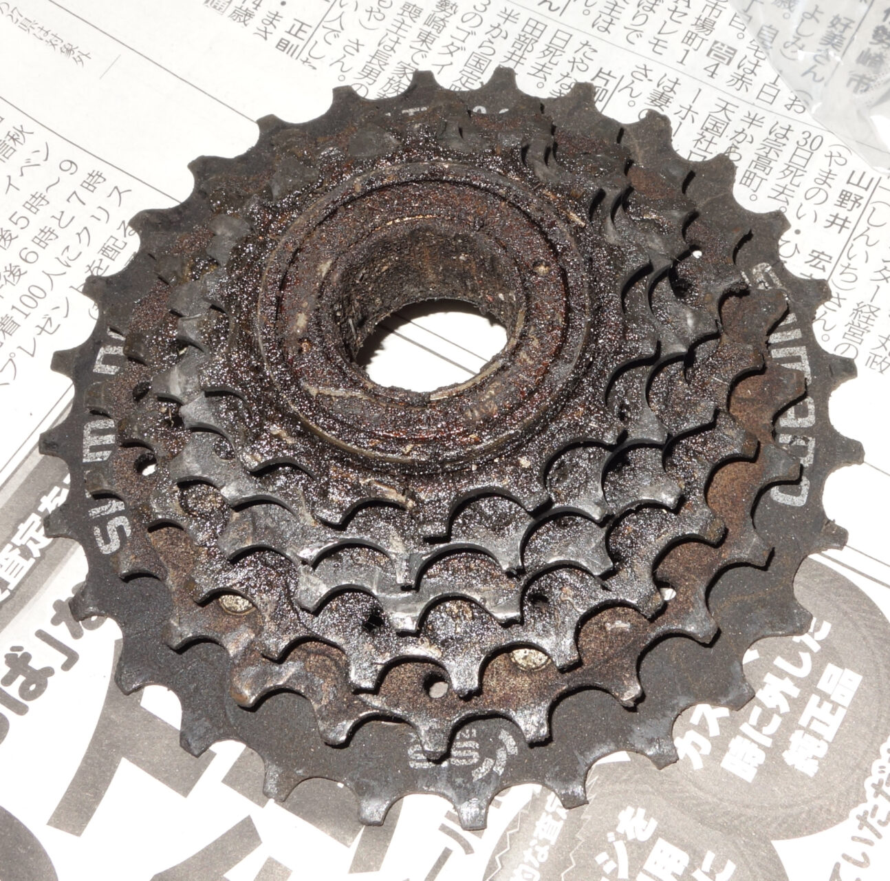 外したフリーホイールに問題がないか回してみると特に問題なさそうです。汚いけど。