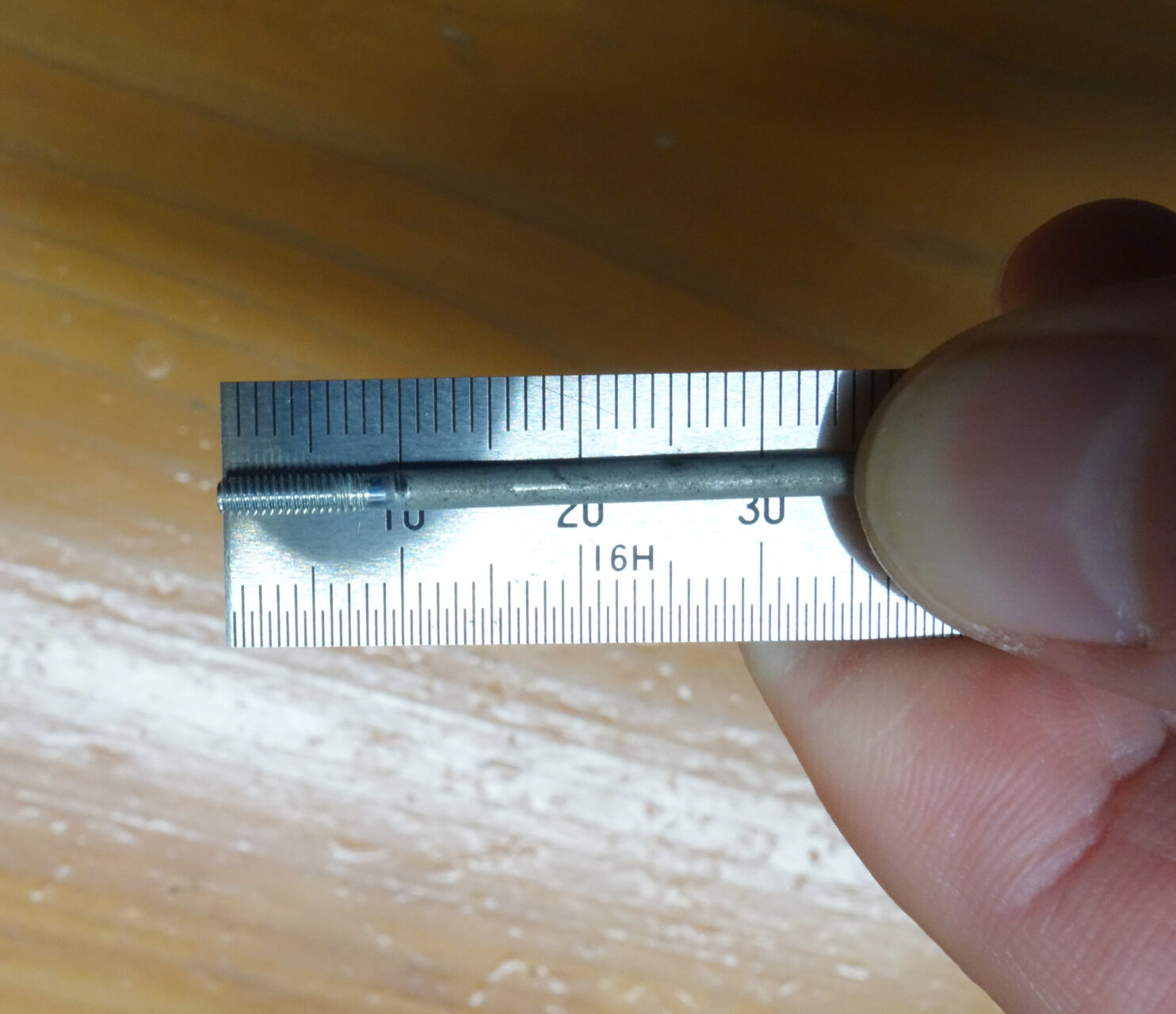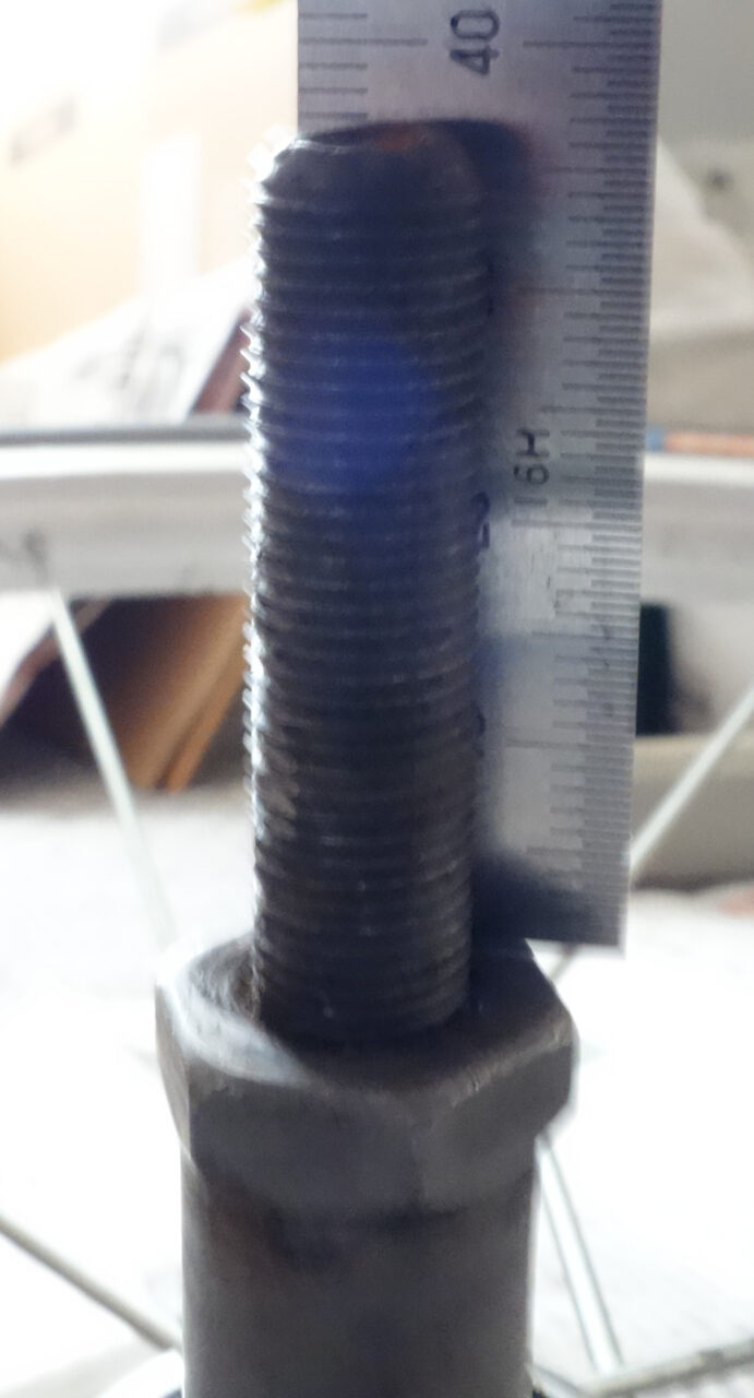 フリーホイールを外すとハブのナット類が見えてきます。まず、軸の端から各ナットまでの長さを計っておくと戻す際にどの位回すかで悩まなくて良いと思い計っておきました。自転車屋さんはこの辺りは感覚でやっているという事なのでまぁ、適当みたいですけど。