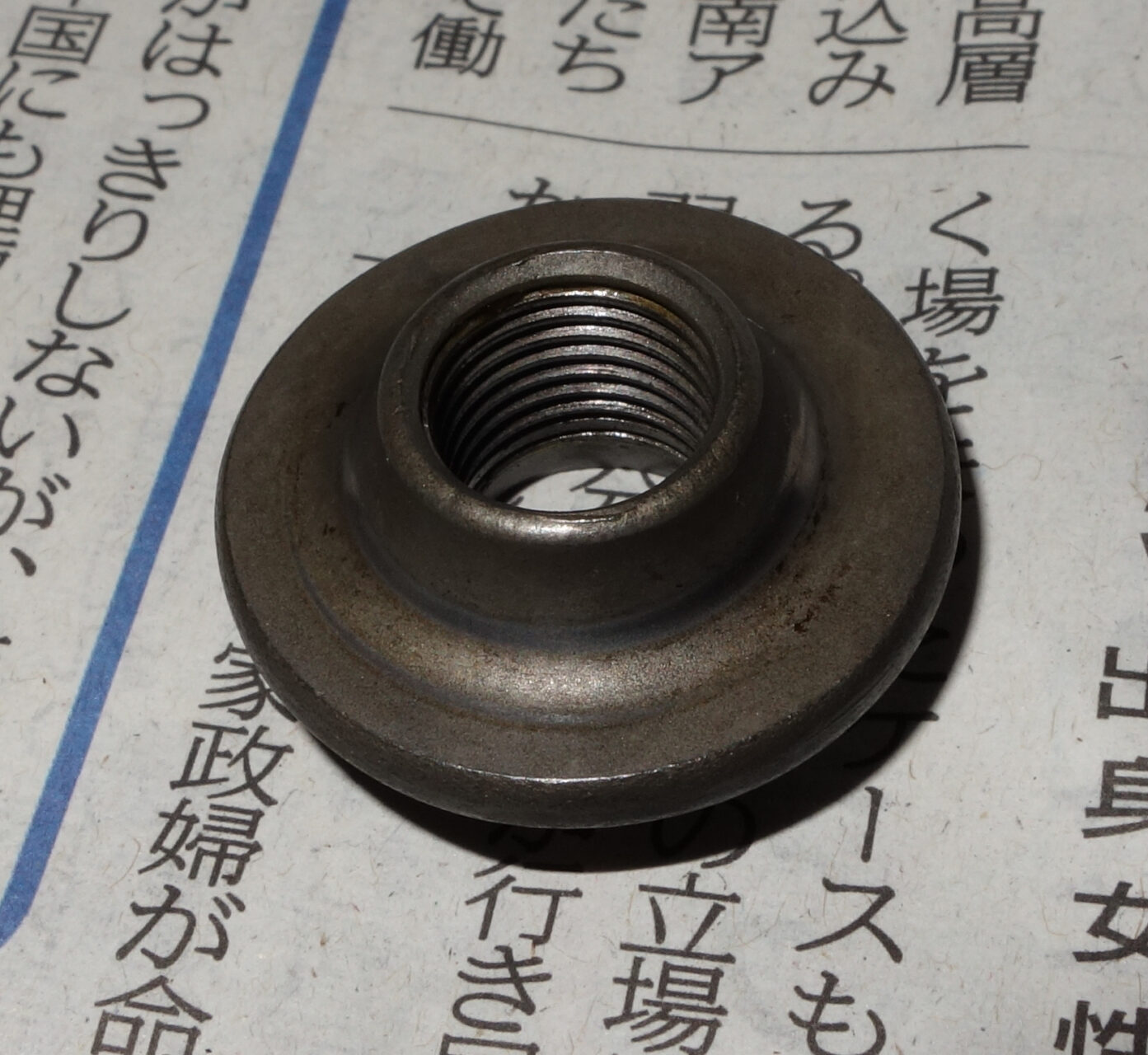 長ナットを外した後玉押しを外します。下の画像は綺麗にした後ですが取り外し時はグリスの固着等多少段差的なものがありました。この段差をベアリングが乗り越える時に異音が発生するのかなぁと思いますがどうでしょう。先に進みます。