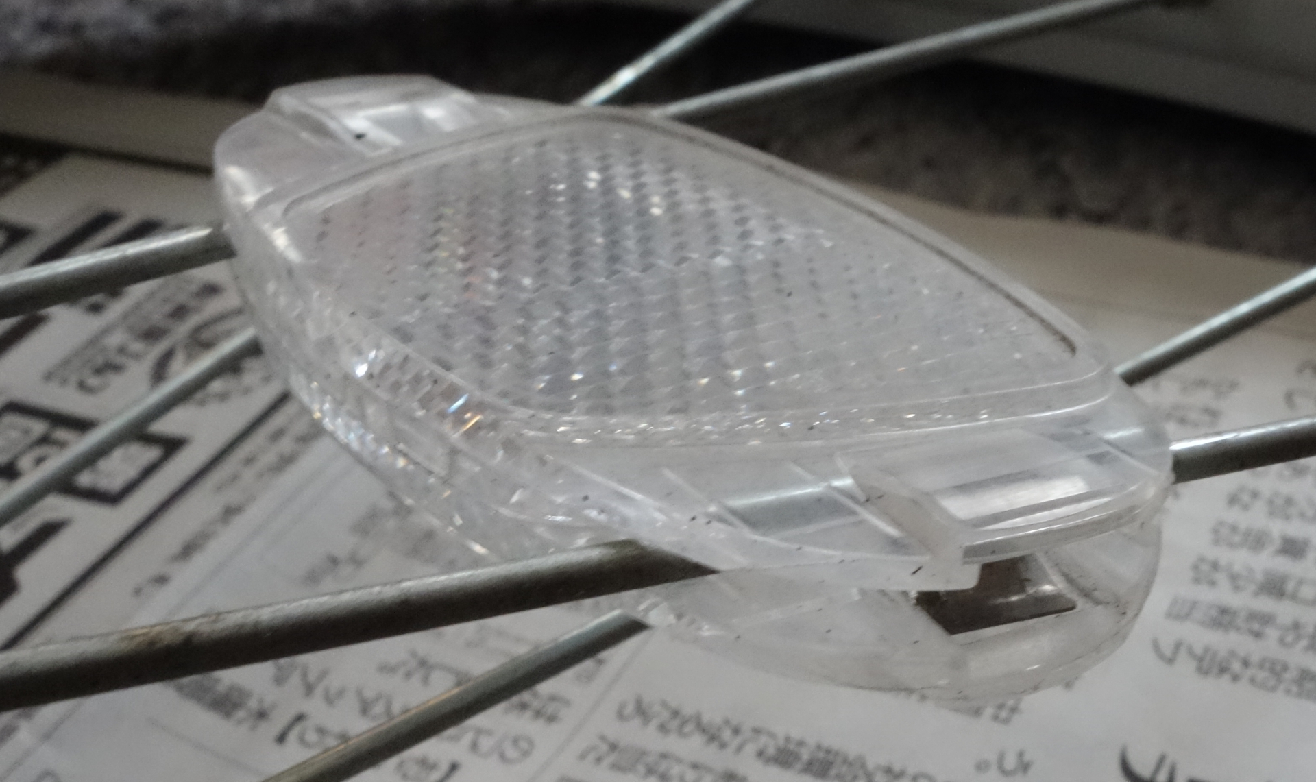 スポークに装着する部分が内向きに向かってロックがかかるようになっているので素手では外れません。マイナスドライバを溝にはめ込み爪を押して外そうと思いましたが両側にあって無理そうなので力を込めてこじりました。バキッて。装着部品部分がもげてもう使えません。