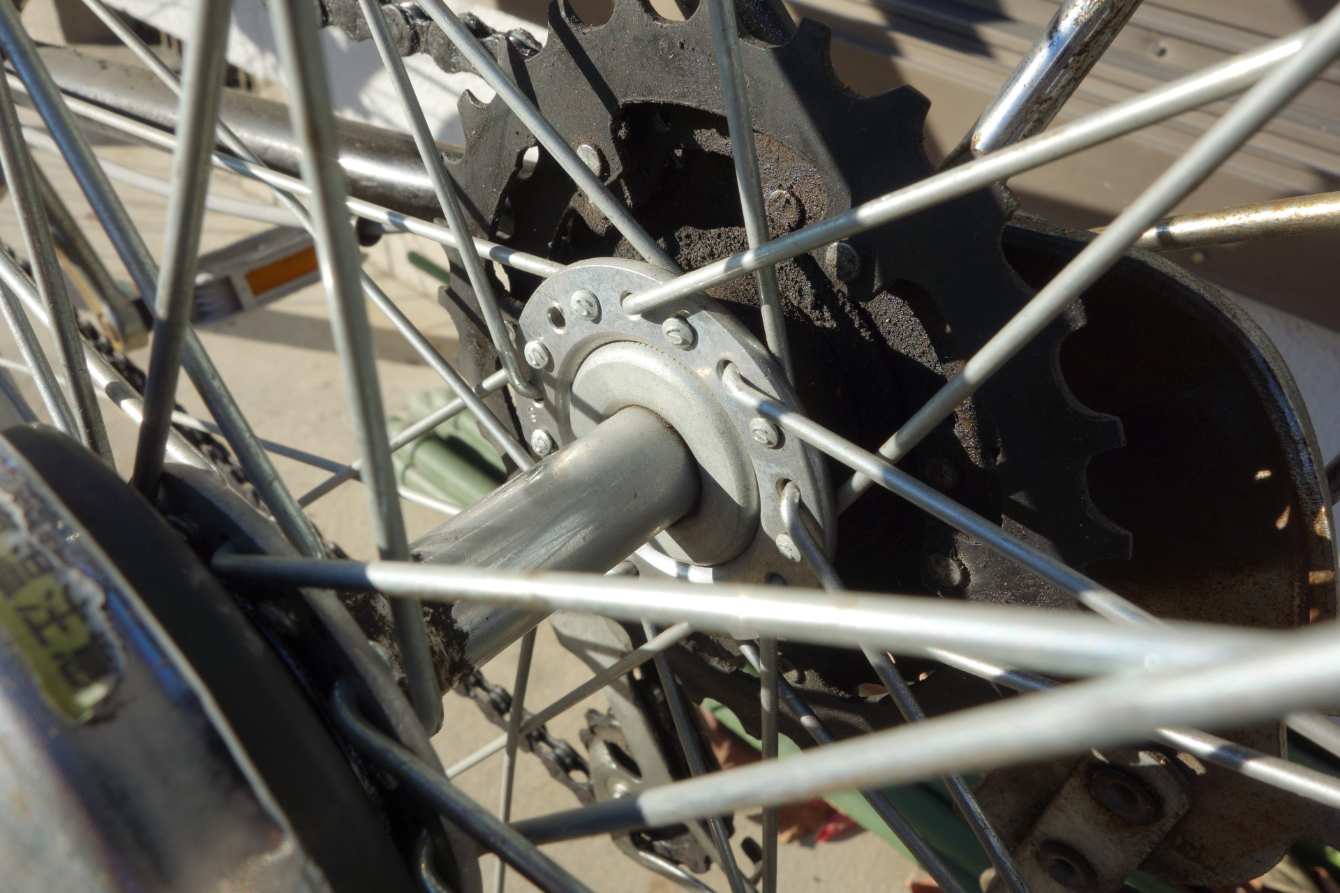 後輪で音がするという事は多分車軸だろうと思い込み後輪を取り外し車軸のハブを分解します。