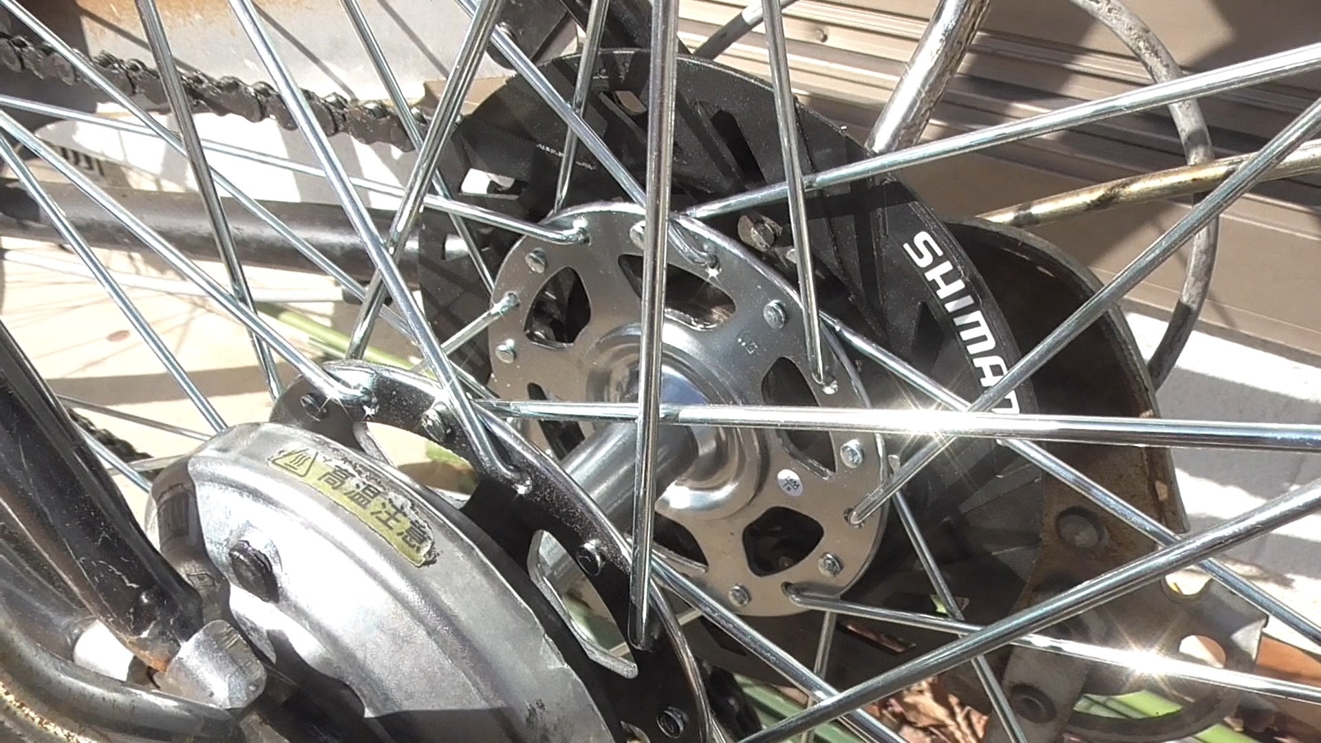 旧車輪と新車輪のブレーキの取り付け位置が同じか確認したところ大丈夫のようです。