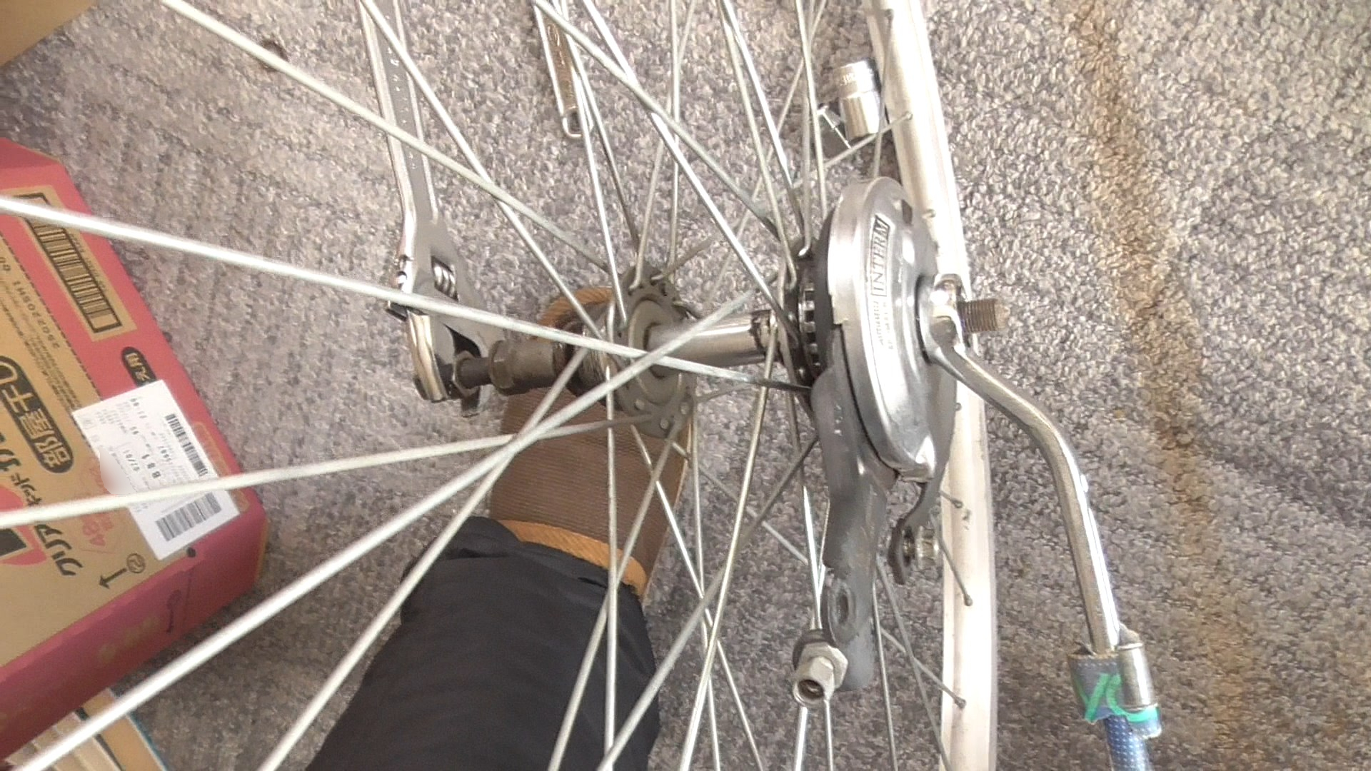 このハブは中野鉄工所のM20というネットで調べても出てこない型番です。計測すると車軸は3/8インチで長さ198㎜前後なのでママチャリとしては、一般的な仕様でしょうか。