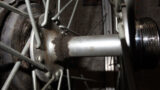 最後に写真の右側のブレーキワイヤーを引っ張りながらブレーキシューとホイールの隙間が両側とも2-3mm程度になる様にしてナットを締めれば完了です。一応この手のブレーキには、アジャスターとかついているのですが大して調整できないのでワイヤーをうまい具合に取り付ける方が手っ取り早いと当方は、思いこんでおります。